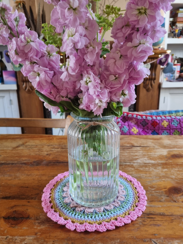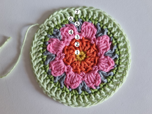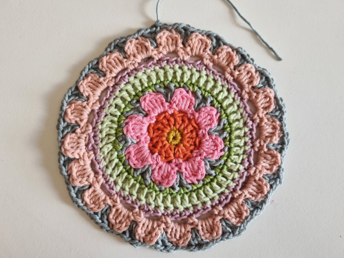 De Bloemenpers Mandala is een ontwerp van Attic24 wat met toestemming naar het Nederlands vertaald is. Het haakpatroon vind je gratis op de website van Een Mooi Gebaar.