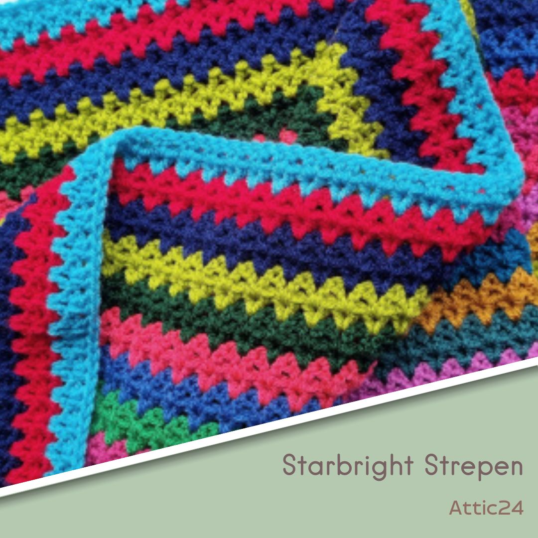 De Starbright deken is een project van Attic24, met toestemming naar het Nederlands vertaald door Een Mooi Gebaar. Je kunt het PDF haakpatroon, zonder advertenties hier aanschaffen. Je kunt het haakpatroon ook gratis bekijken op de website van Een Mooi Gebaar.