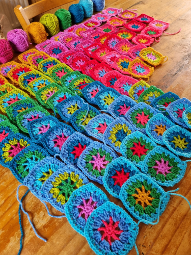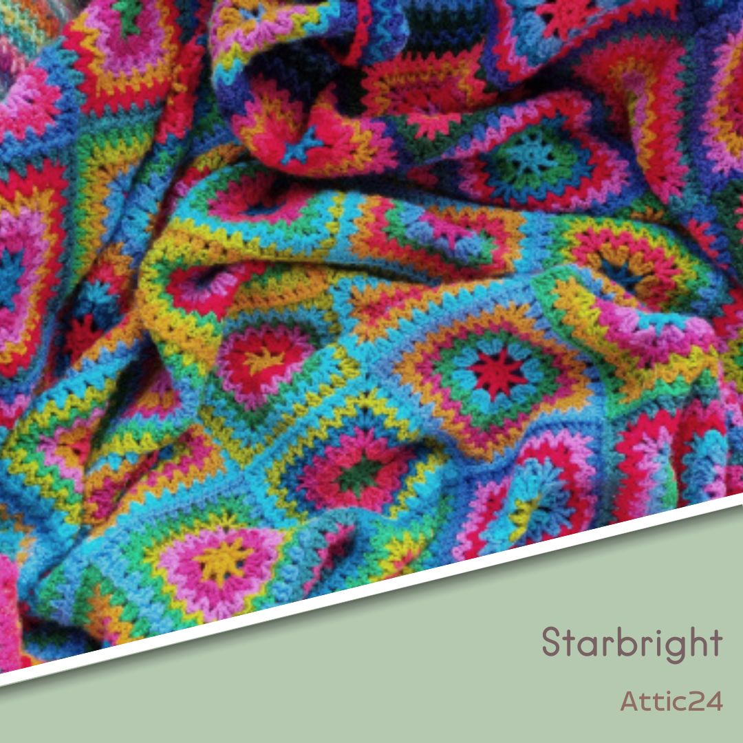 Starbright is een prachtige deken van Attic24. Deze deken wordt met schitterende kleuren gehaakt. Het is een feestje, heel kleurrijk, eenvoudig haakpatroon.