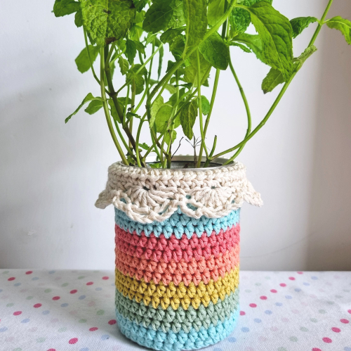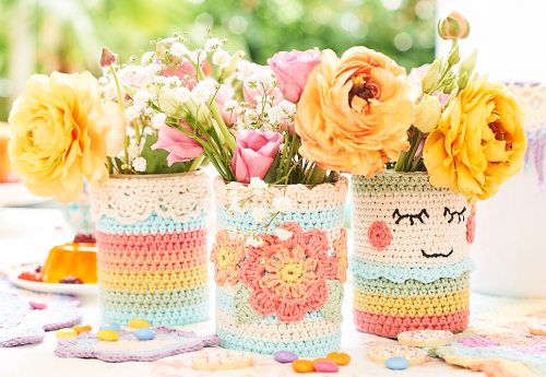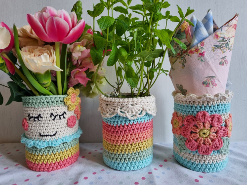 Je kunt ze gebruiken als vaasje, pennenhouder, haaknaaldhouder of servethouder op de tuintafel